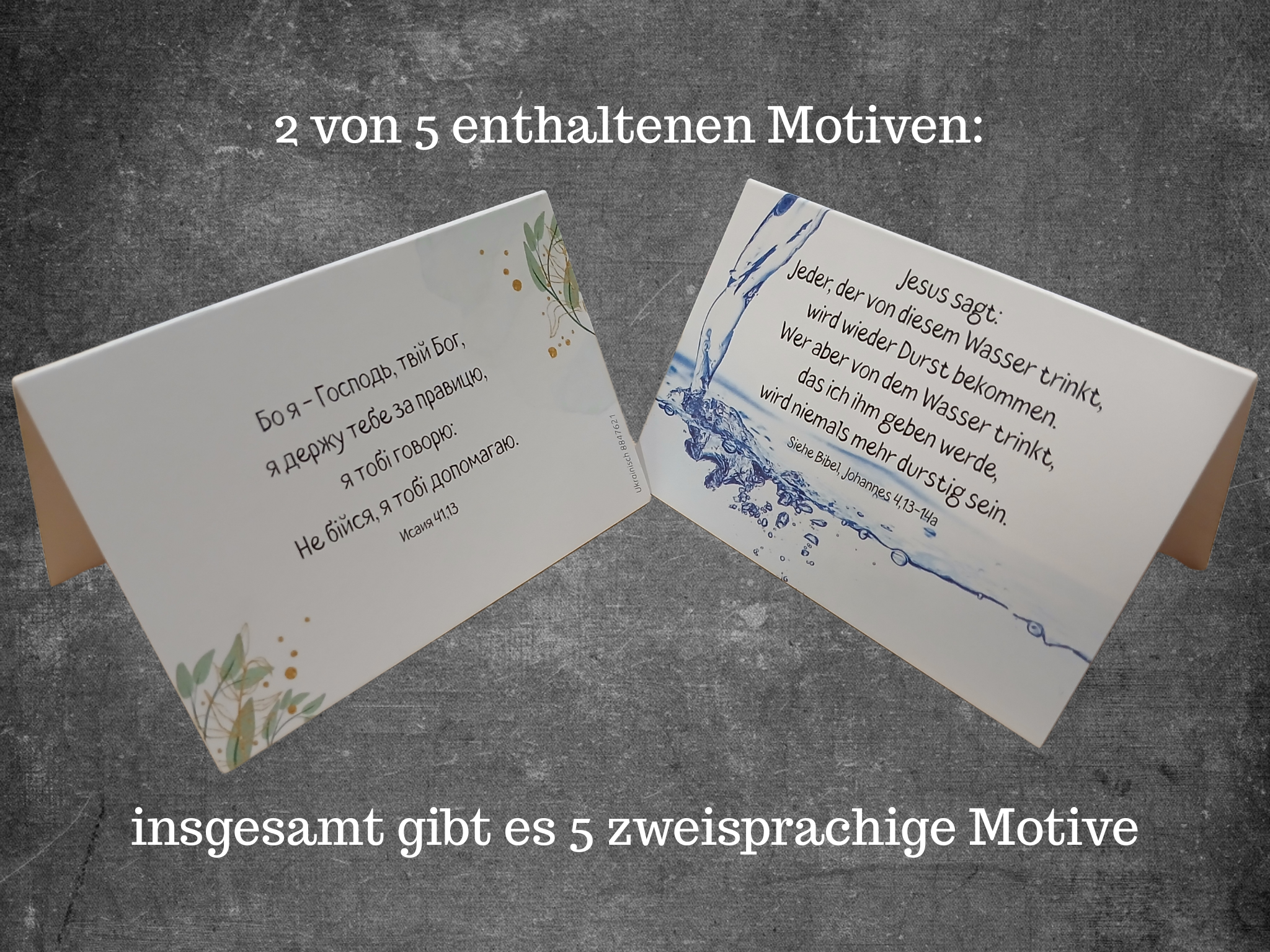 Produktinformationen "Bibelverskärtchen zum Aufstellen - 10er Pack, Ukrainisch-Deutsch"