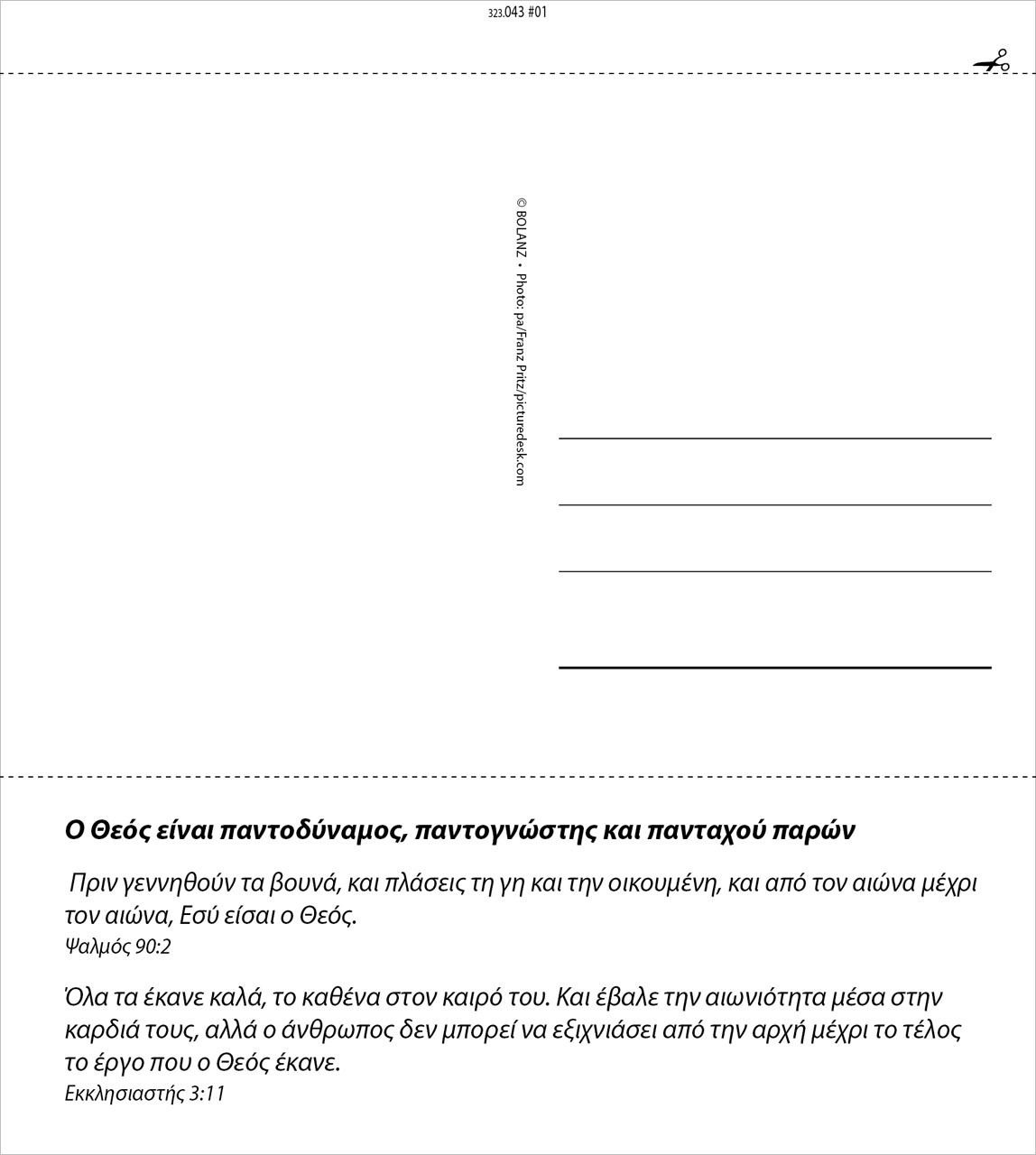 Auf den Rückseiten sind weitere jeweils passende Bibelverse ergänzend mit abgedruckt.
