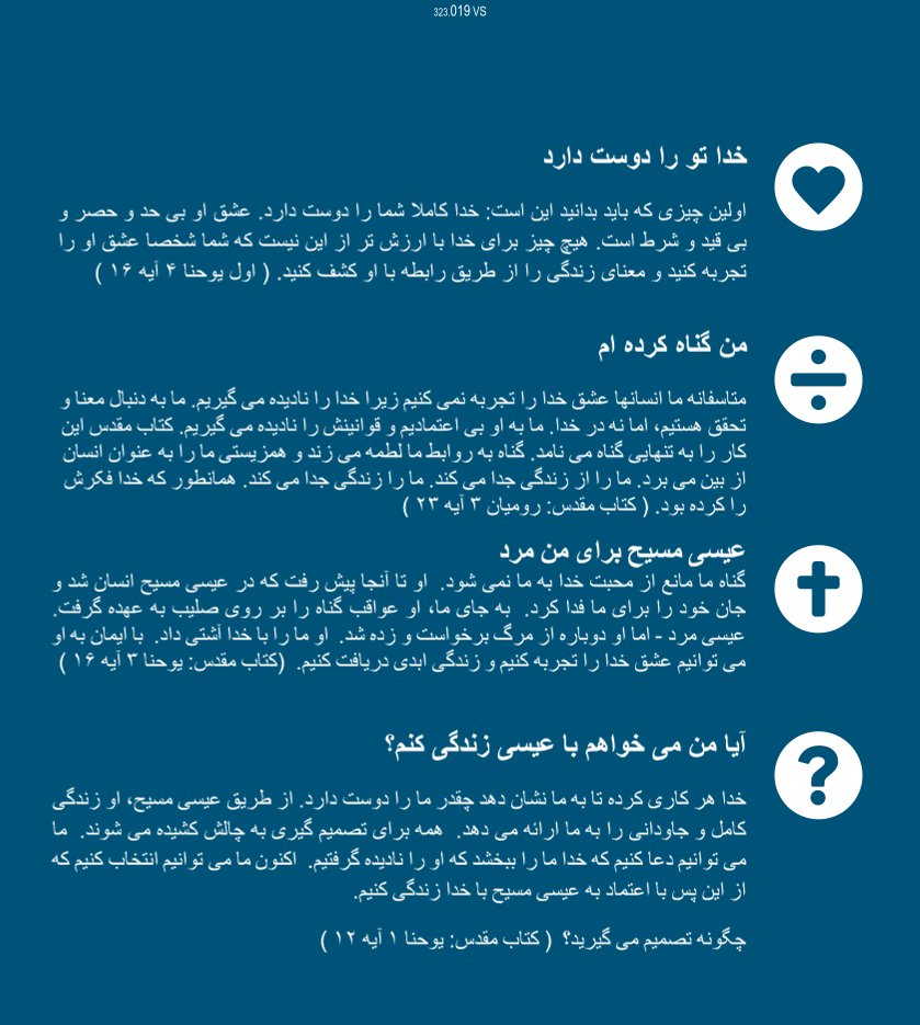 Das Evangelium wird anhand "The Four" und mit Verweis auf dazugehörigen Bibelstellen punktgenau erklärt: