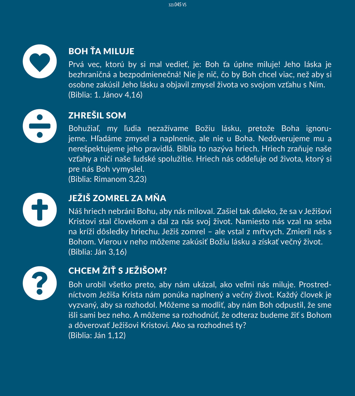 Das Evangelium wird anhand "The Four" und mit Verweis auf dazugehörigen Bibelstellen punktgenau erklärt: