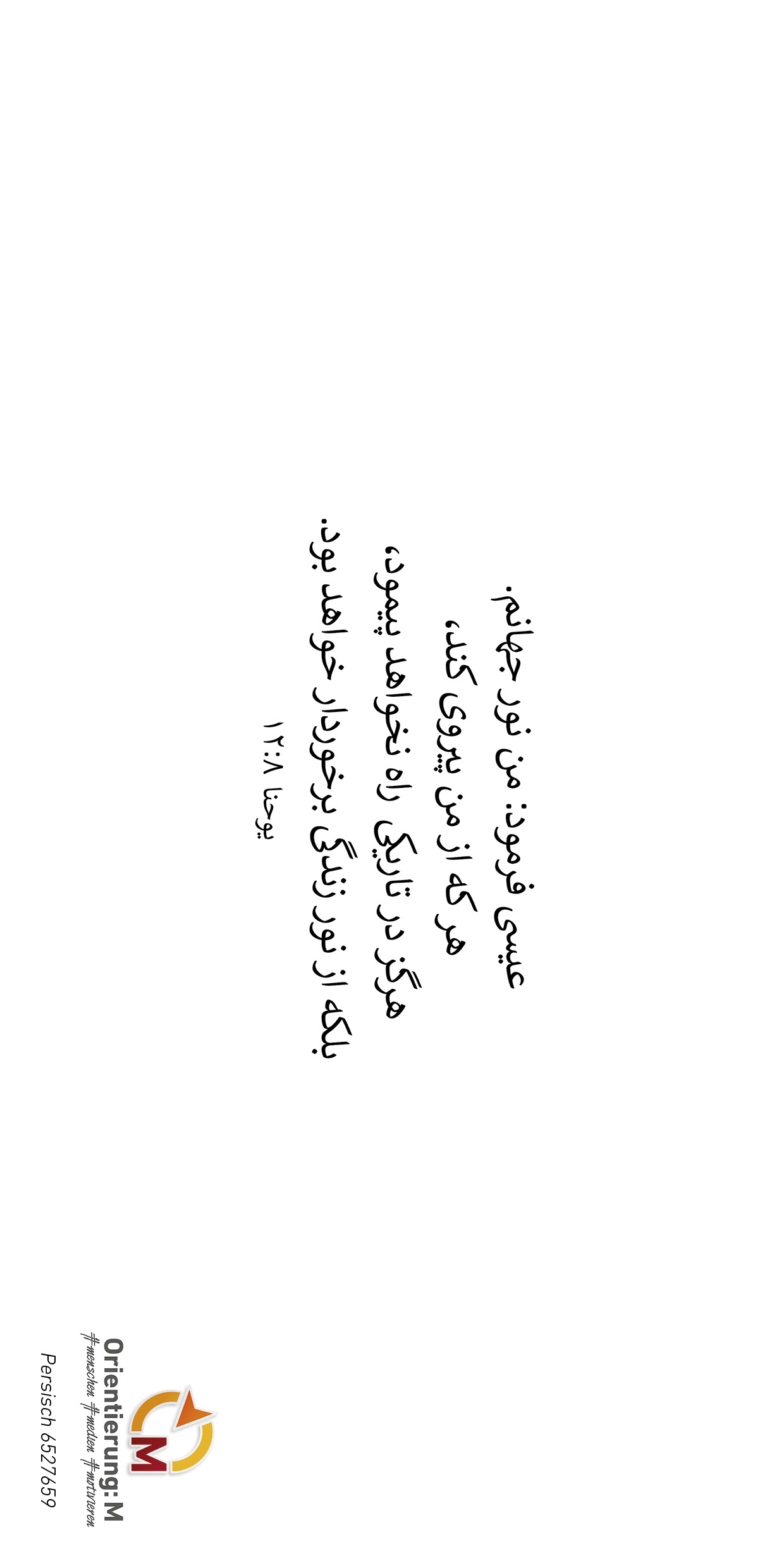 Auf der Rückseite steht der Bibelvers aus Johannes 8,12: "Jesus spricht: Ich bin das Licht der Welt. Wer mir nachfolgt, wird das Licht des Lebens haben."