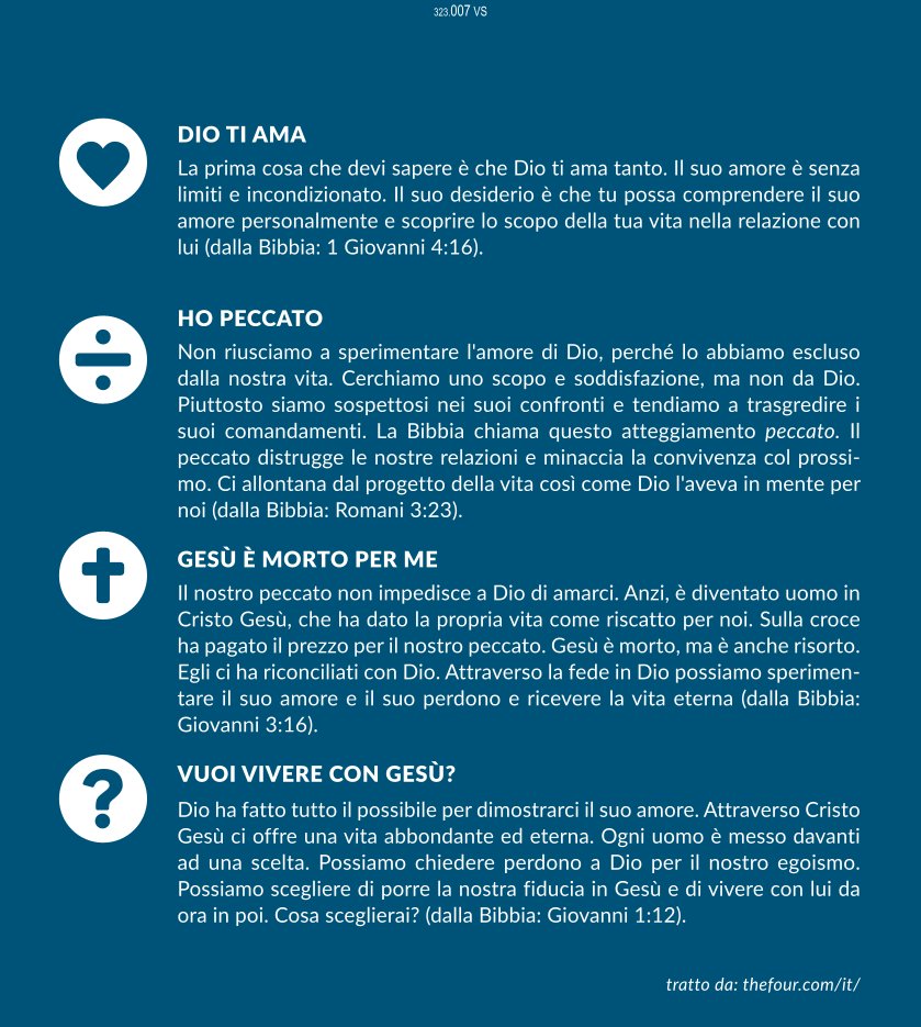 Das Evangelium wird anhand "The Four" und mit Verweis auf dazugehörigen Bibelstellen punktgenau erklärt:
