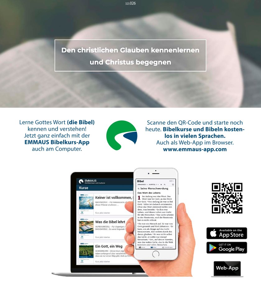 Am Ende wird zur EMMAUS-Bibelkurs App eingeladen.