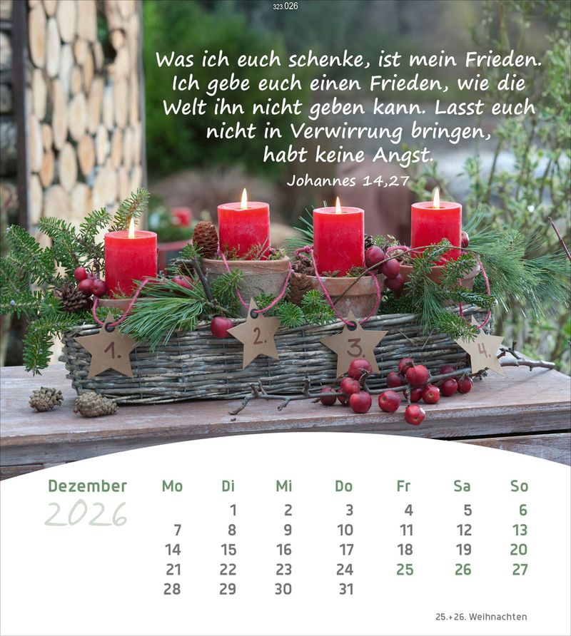 Mit 12 verschiedenen Monatsbildern und Bibelversen.