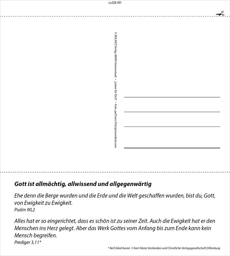 Auf den Rückseiten sind weitere jeweils passende Bibelverse ergänzend mit abgedruckt.