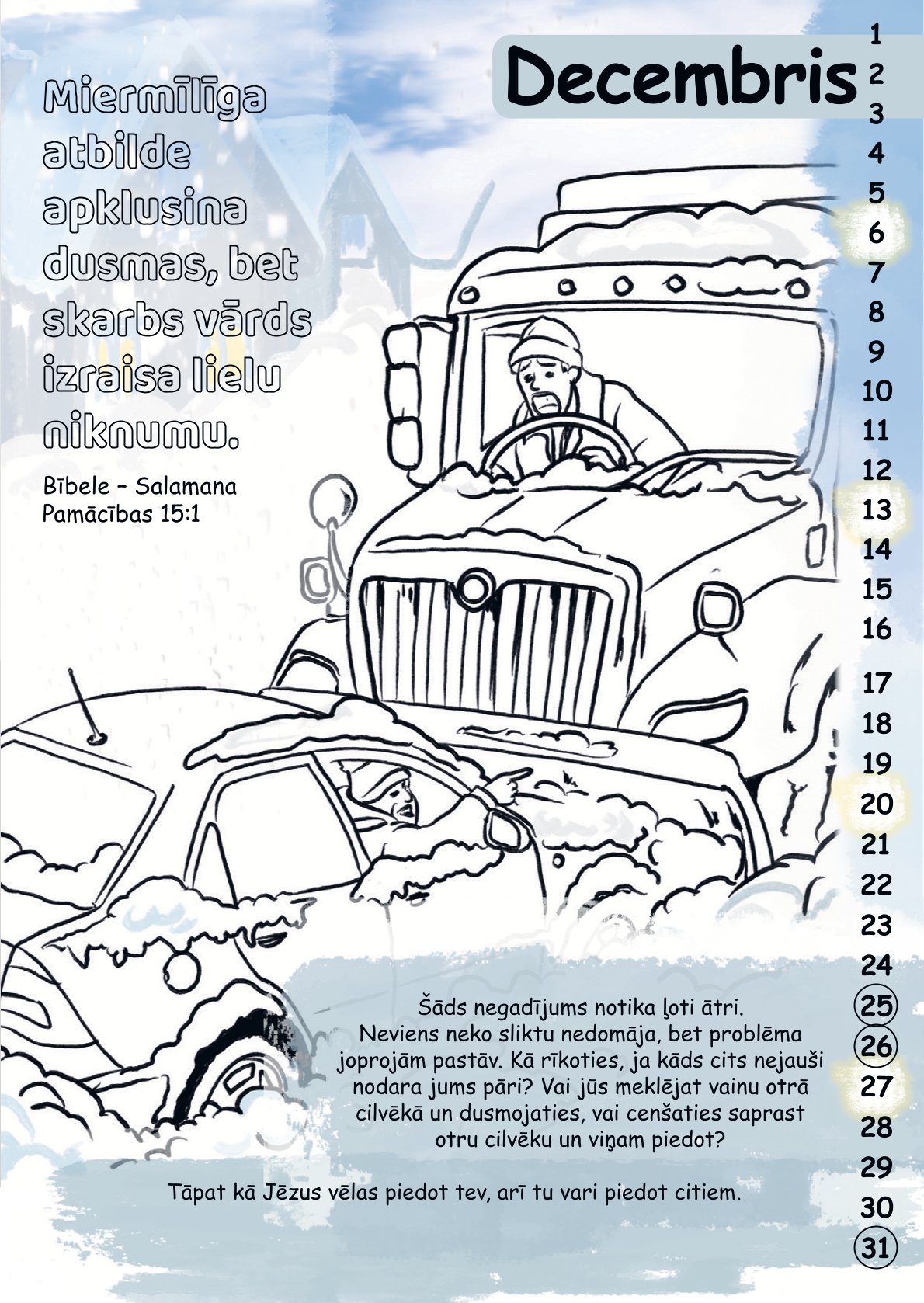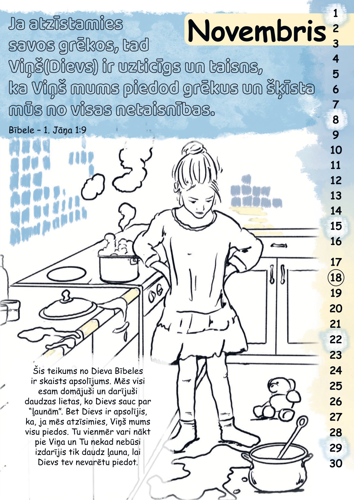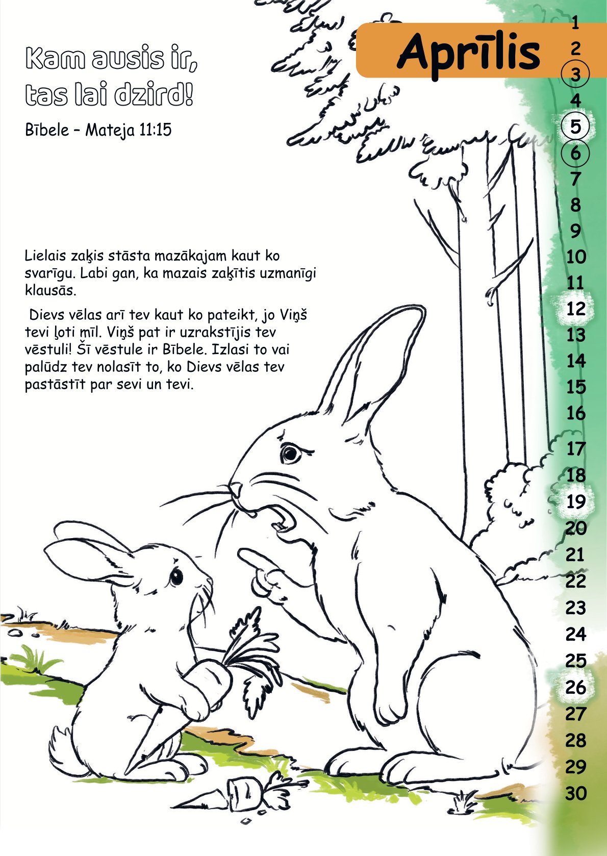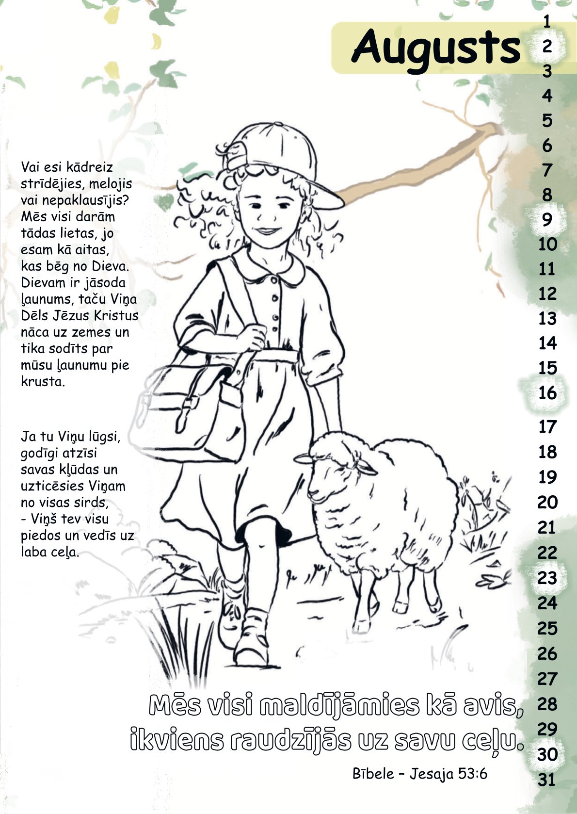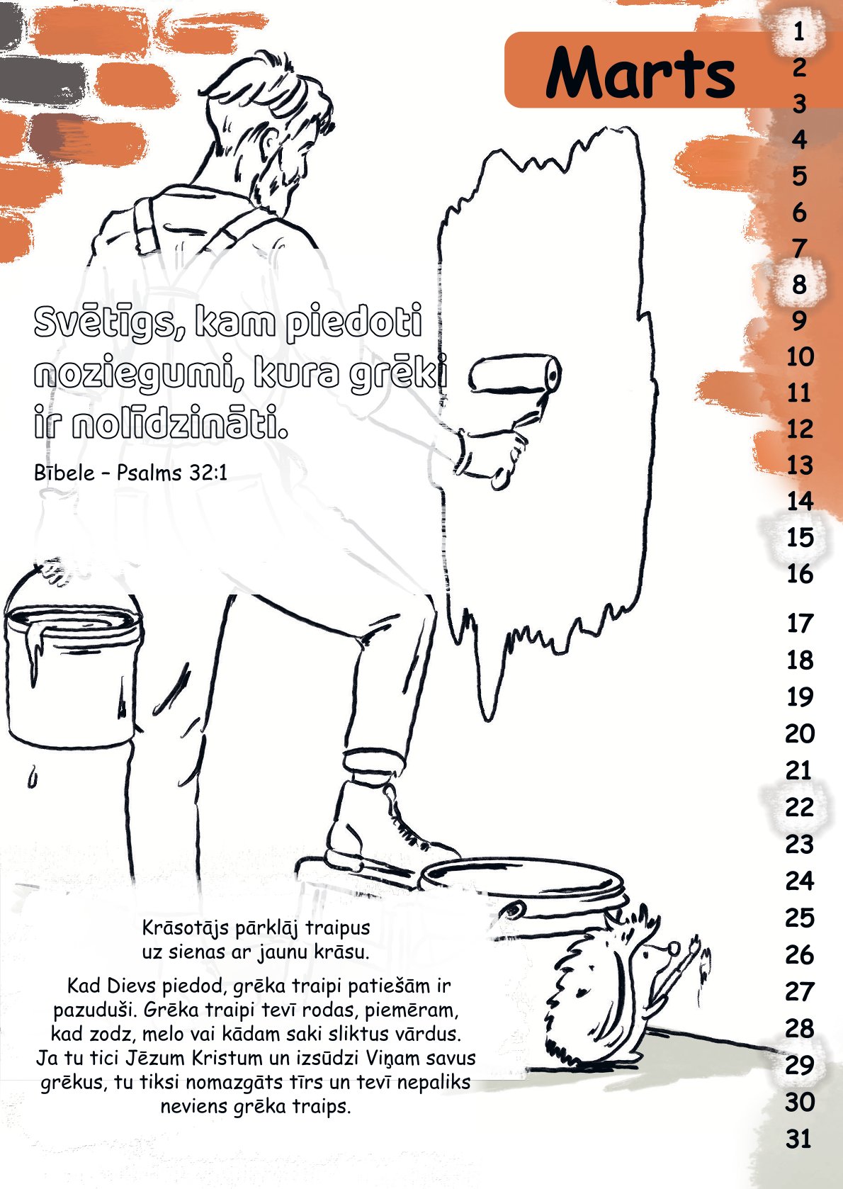 Der Malkalender enthält jeden Monat einen Bibelvers zum Auswendiglernen mit einem thematisch dazu passenden Bild zum Ausmalen.