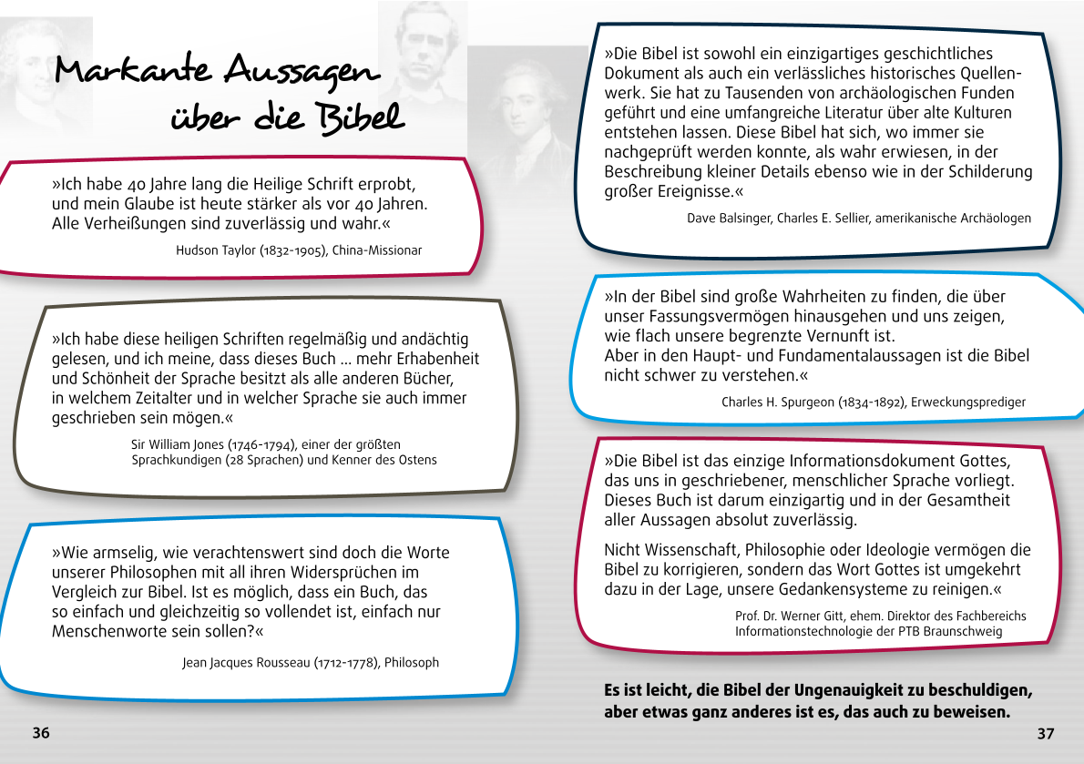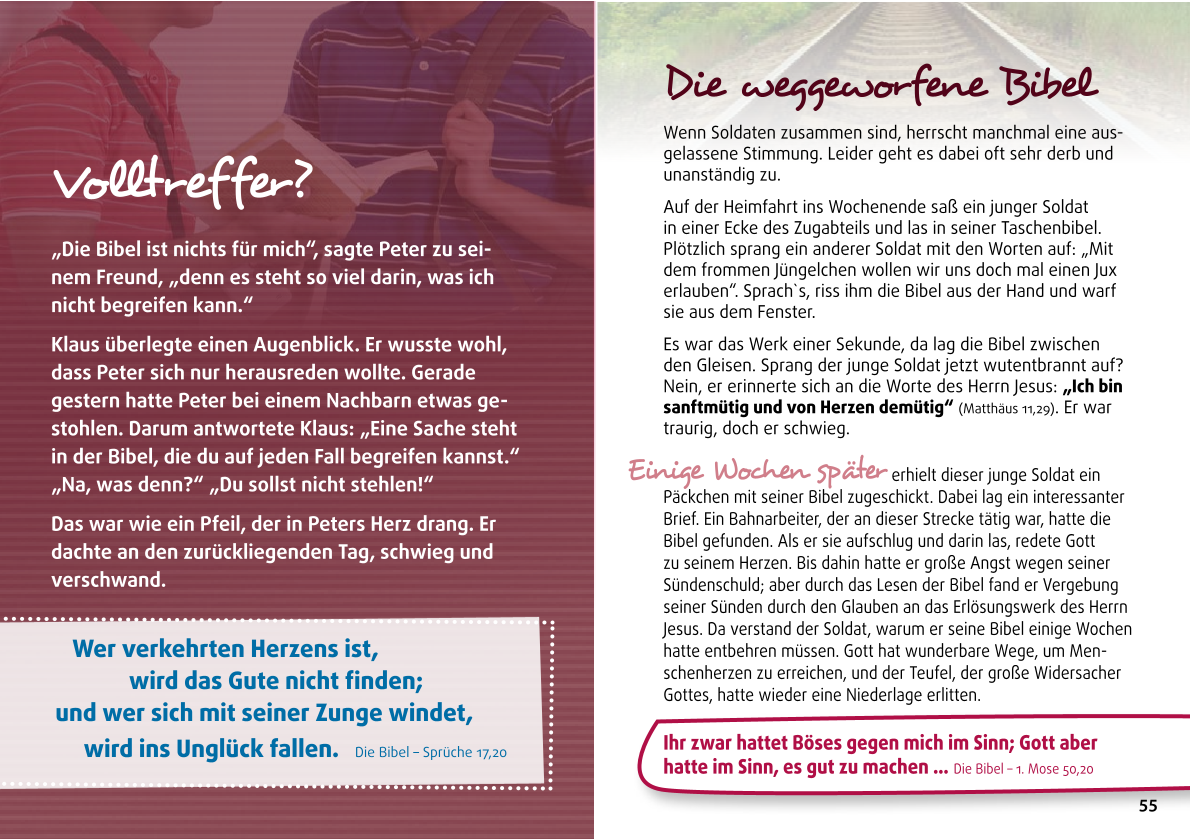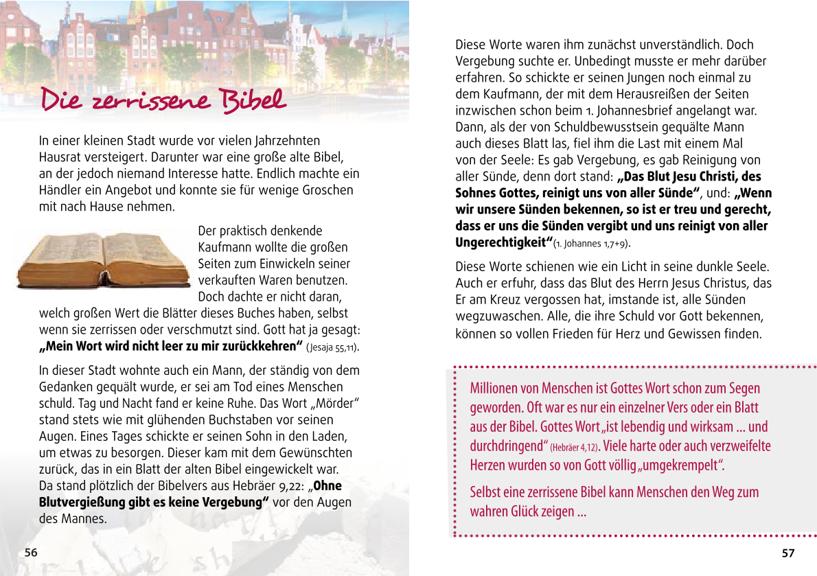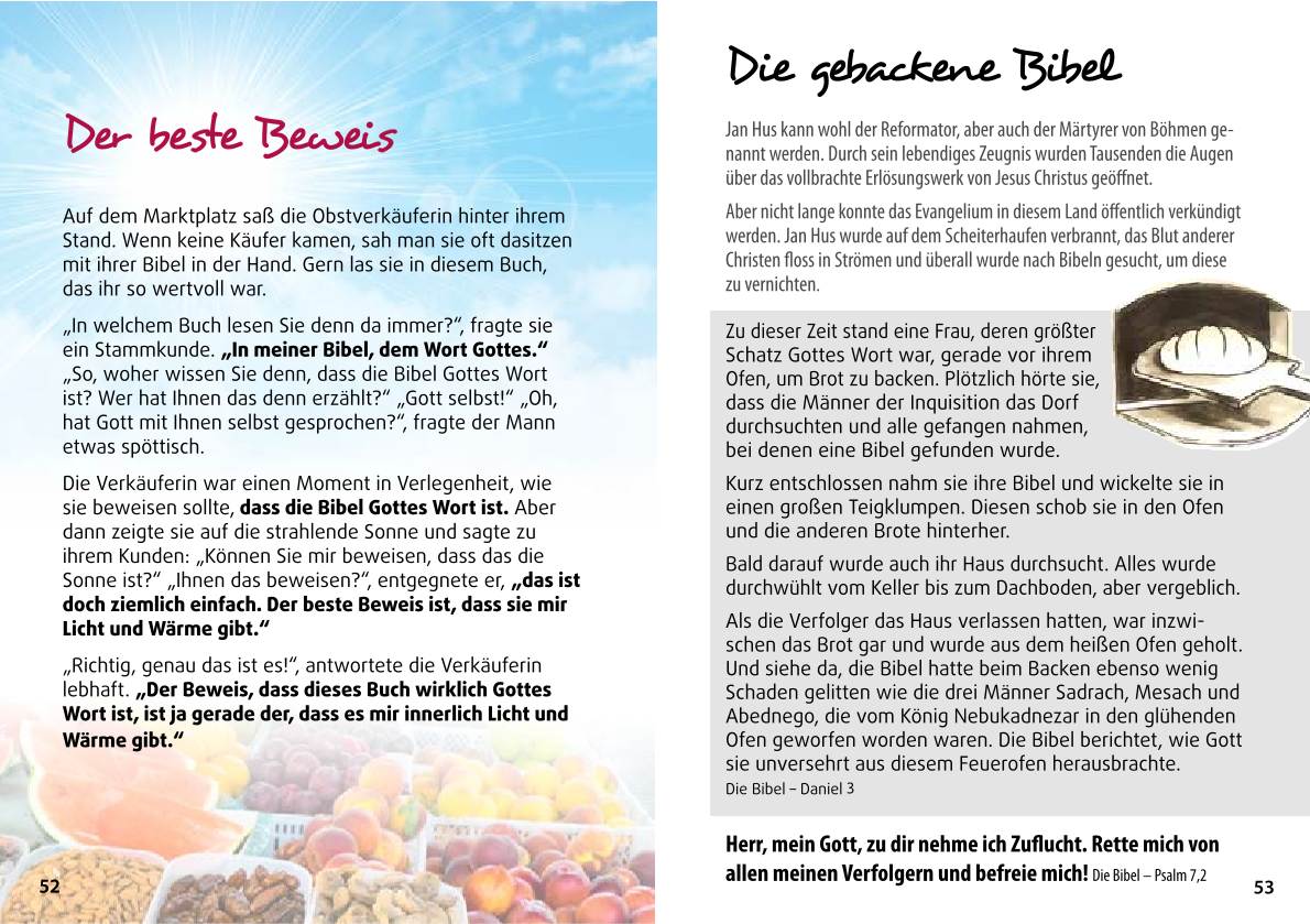 Verschiedene Erlebnisse mit der Bibel runden das Potpourri an Geschichten ab, z.B.: „Die eingemauerte Bibel“, „Die durchschossene Bibel“ u.a..