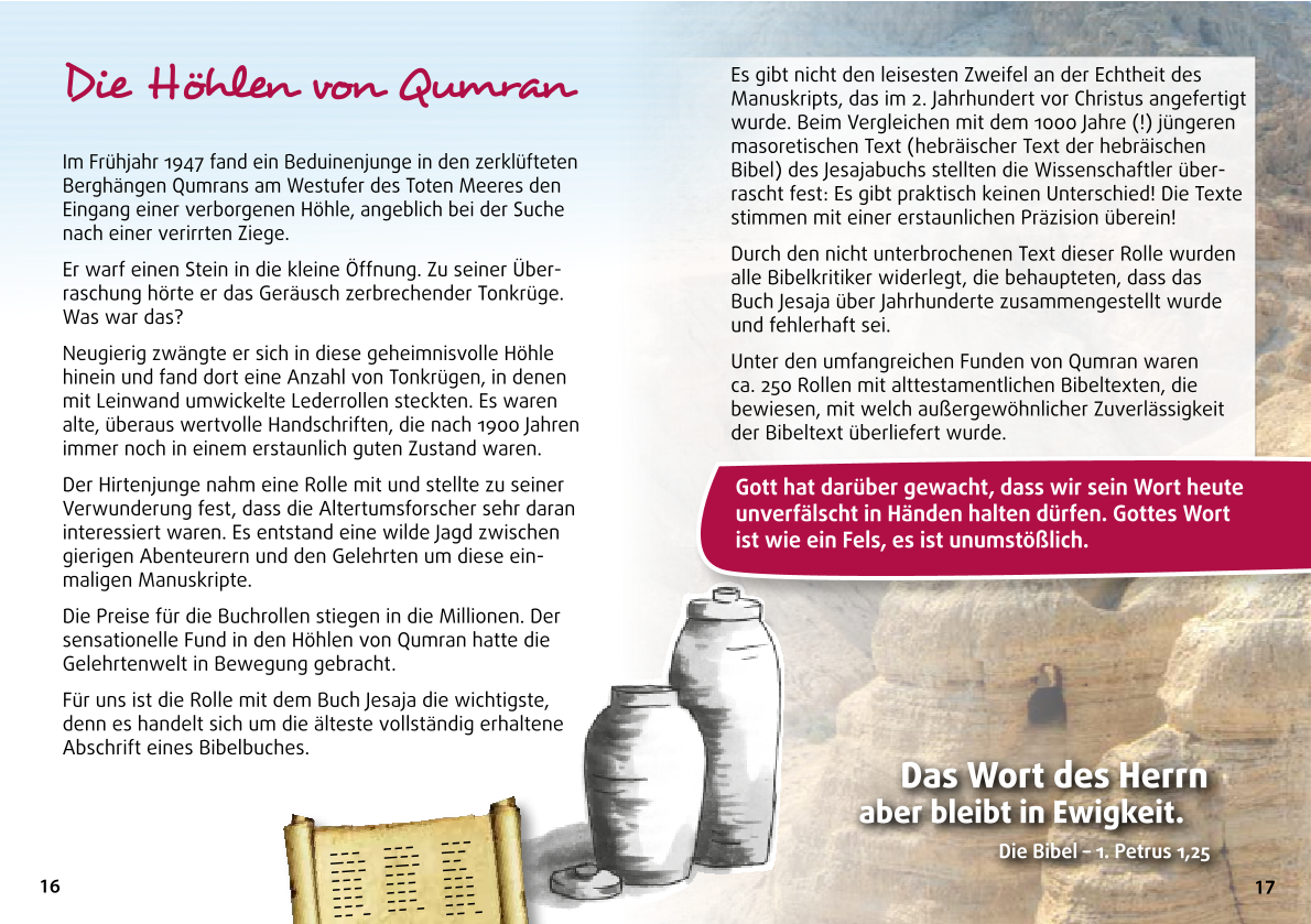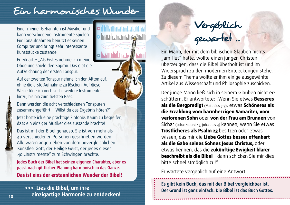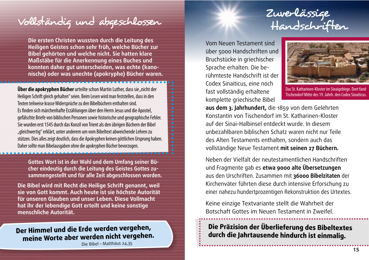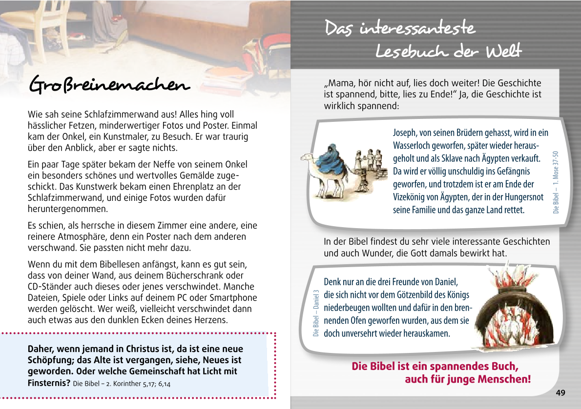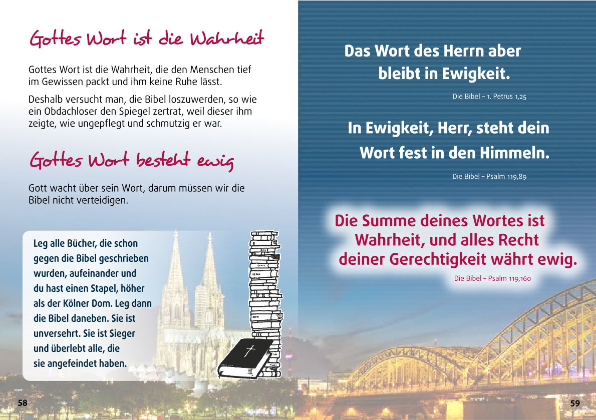 Verschiedene Erlebnisse mit der Bibel runden das Potpourri an Geschichten ab, z.B.: „Die eingemauerte Bibel“, „Die durchschossene Bibel“ u.a..