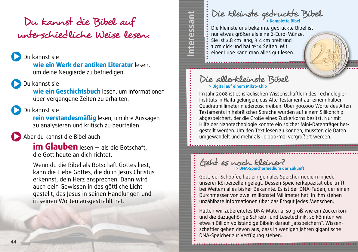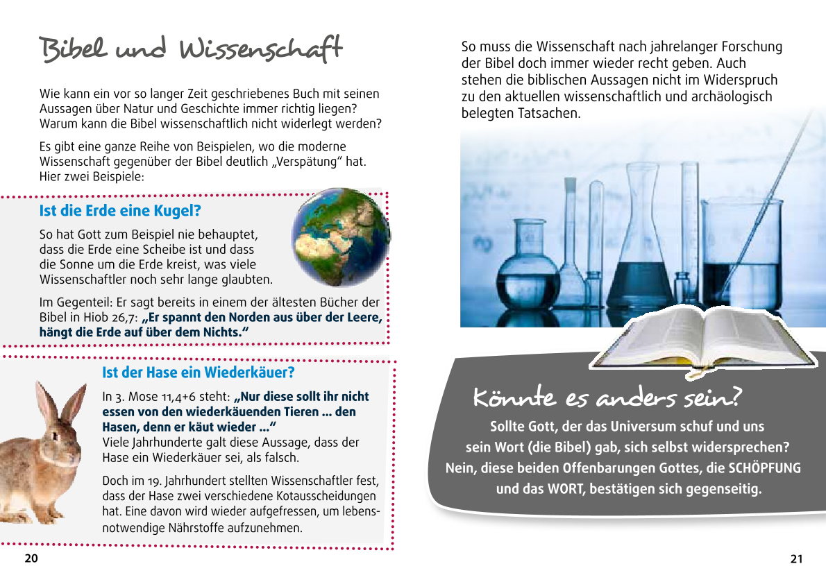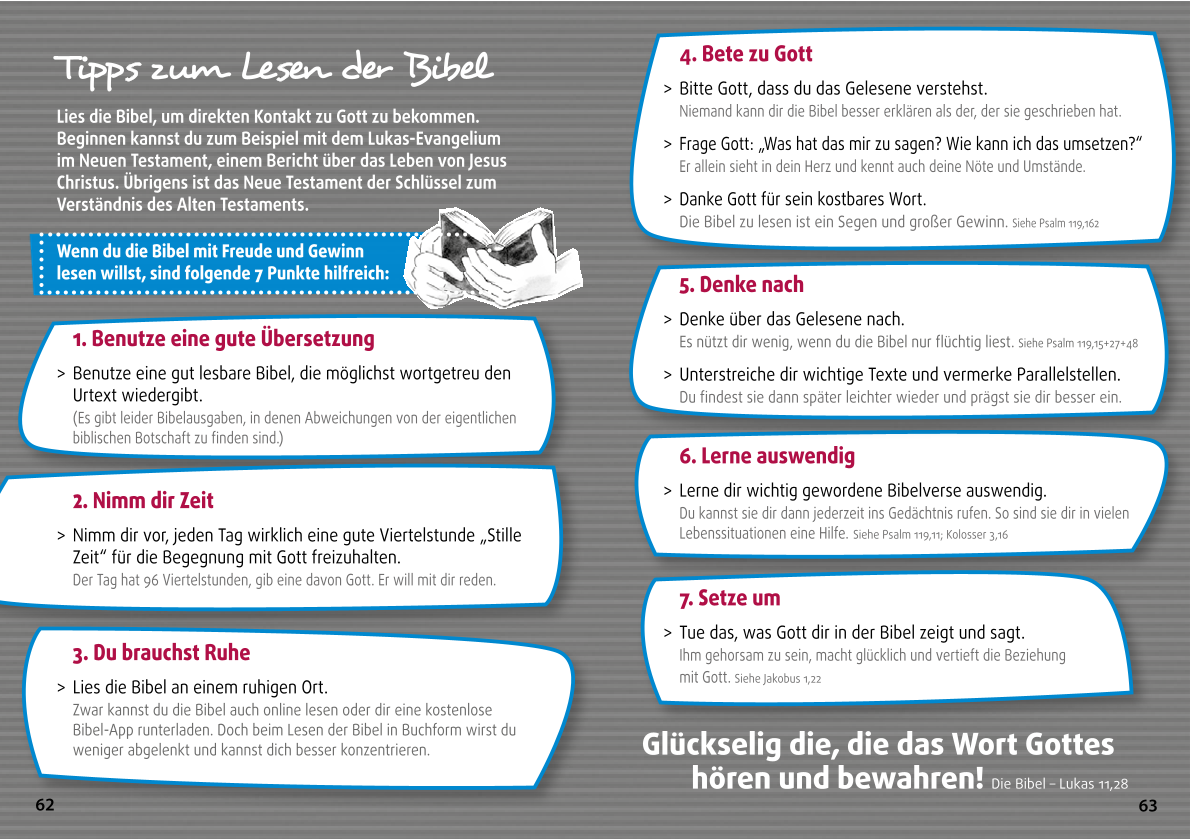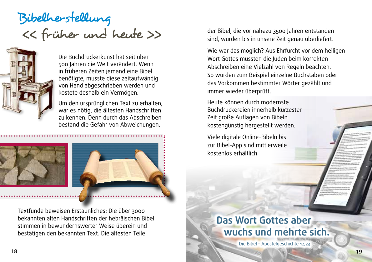 Verschiedene Erlebnisse mit der Bibel runden das Potpourri an Geschichten ab, z.B.: „Die eingemauerte Bibel“, „Die durchschossene Bibel“ u.a..