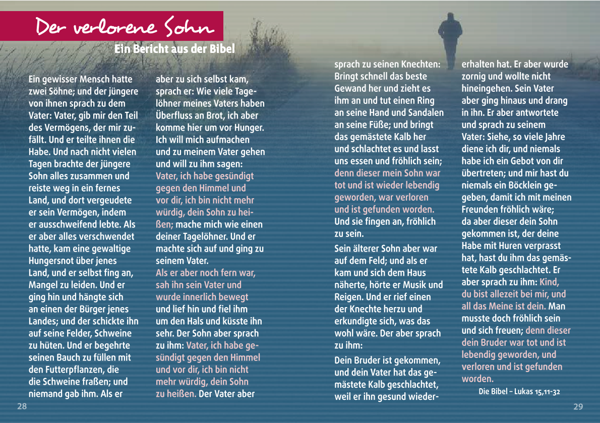 Einzelne Bibelverse und das Gleichnis vom Verlorenen Sohn zeigen die Notwendigkeit und den Weg der Erlösung auf.
